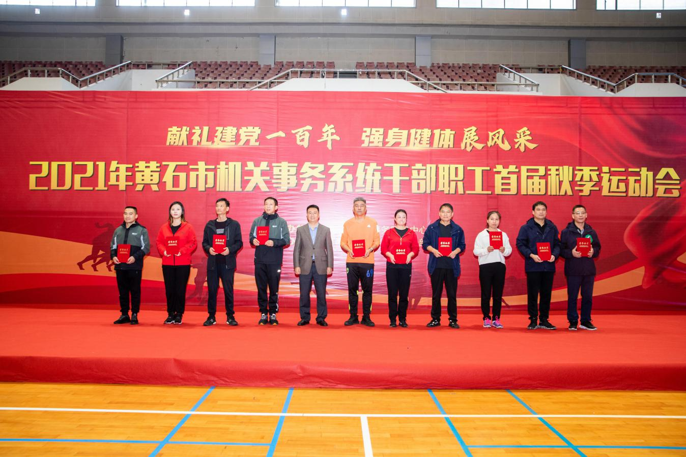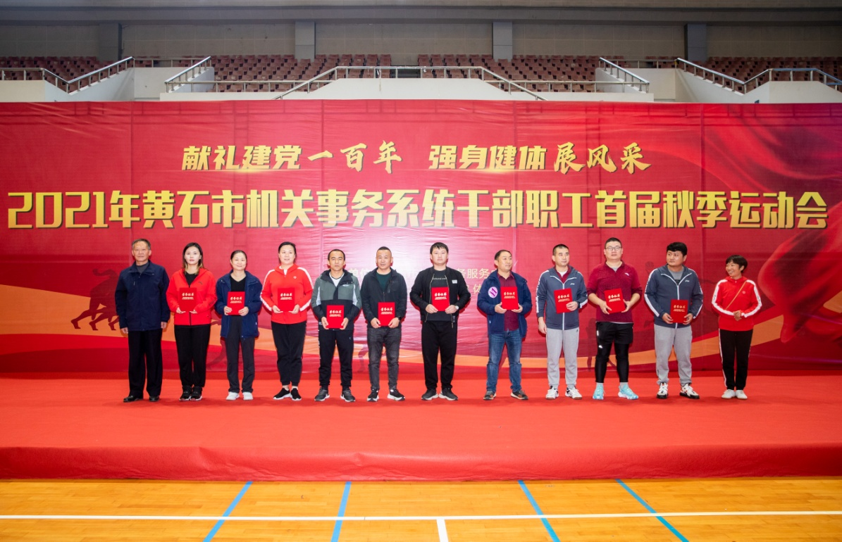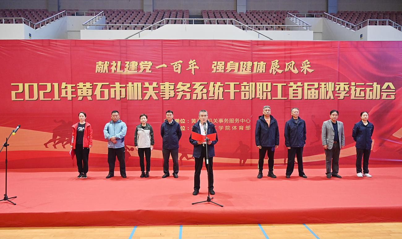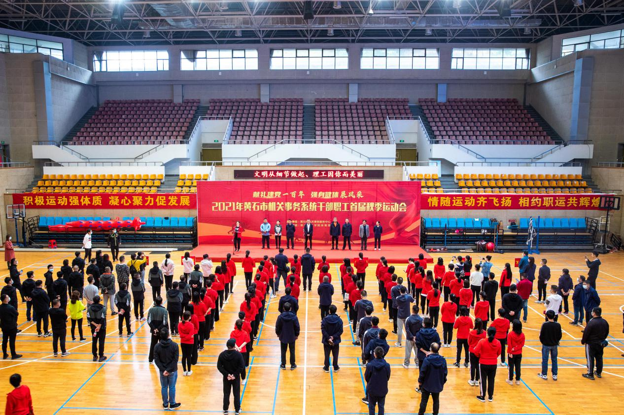 金秋时节,千叶凝红,丹桂飘香。为丰富机关事务系统干部职工业余文化生活,将传承红丝基因和弘扬竞赛竞赛结合起来,激发全体干部职工爱党、敬业、拼搏、争先的热情,6日上午,以“献礼建党一百年,强身健体展风采”为主题,2021年黄石市机关事务系统干部职工首届秋季运动会在湖北理工学院体育馆举行,中心副主任王萍主持开幕式。