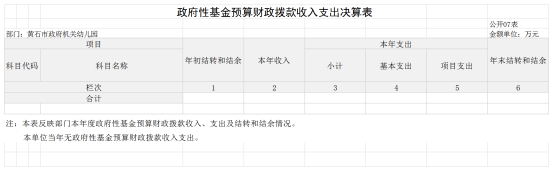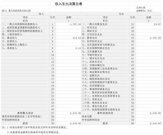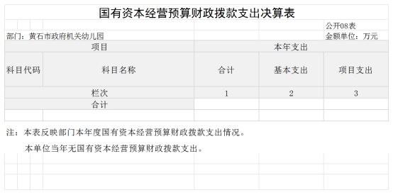 第二部分黄石市政府机关幼儿园2024年度部门决算表