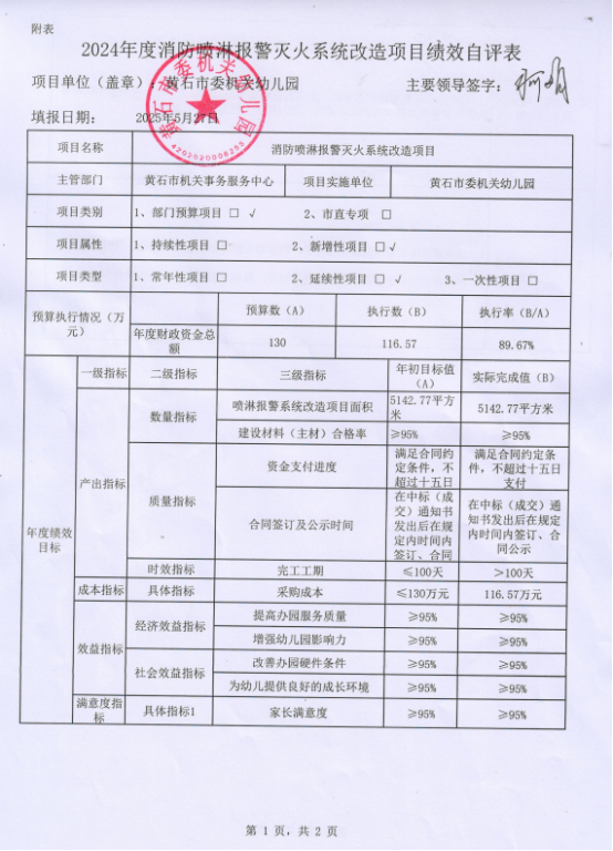 十一、2024年度分园消防喷淋报警系统项目绩效评价自评表或(报告)