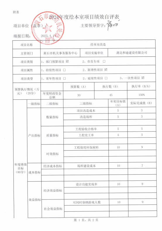 十、2024年度绘本室项目绩效评价自评表或(报告)