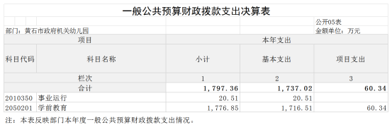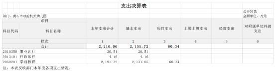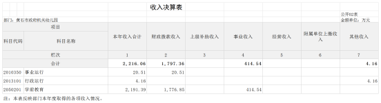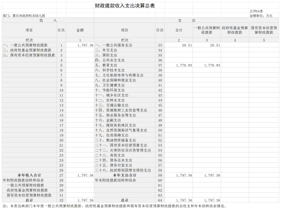 第二部分黄石市政府机关幼儿园2024年度部门决算表