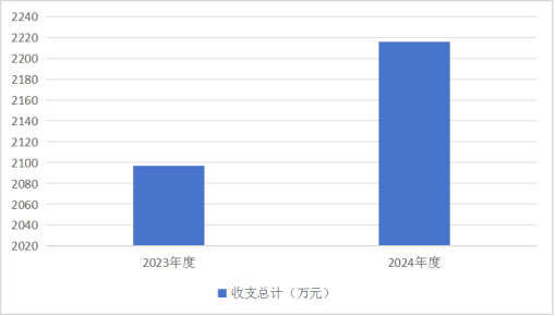 2024年度收、支总计均为2216.06万元。与2023年度相比,收、支总计各增加119.23万元,增长5.7% %,主要原因是增补7名退休人员职业年金坐实资金、新入职人员工资等人员经费,增加了教育发展资金等用于园内维修改造费用。